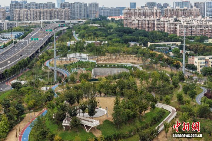 9月22日,江苏北京,航拍位于雨花台区的数据线花园景色。中新社记者 泱波 摄